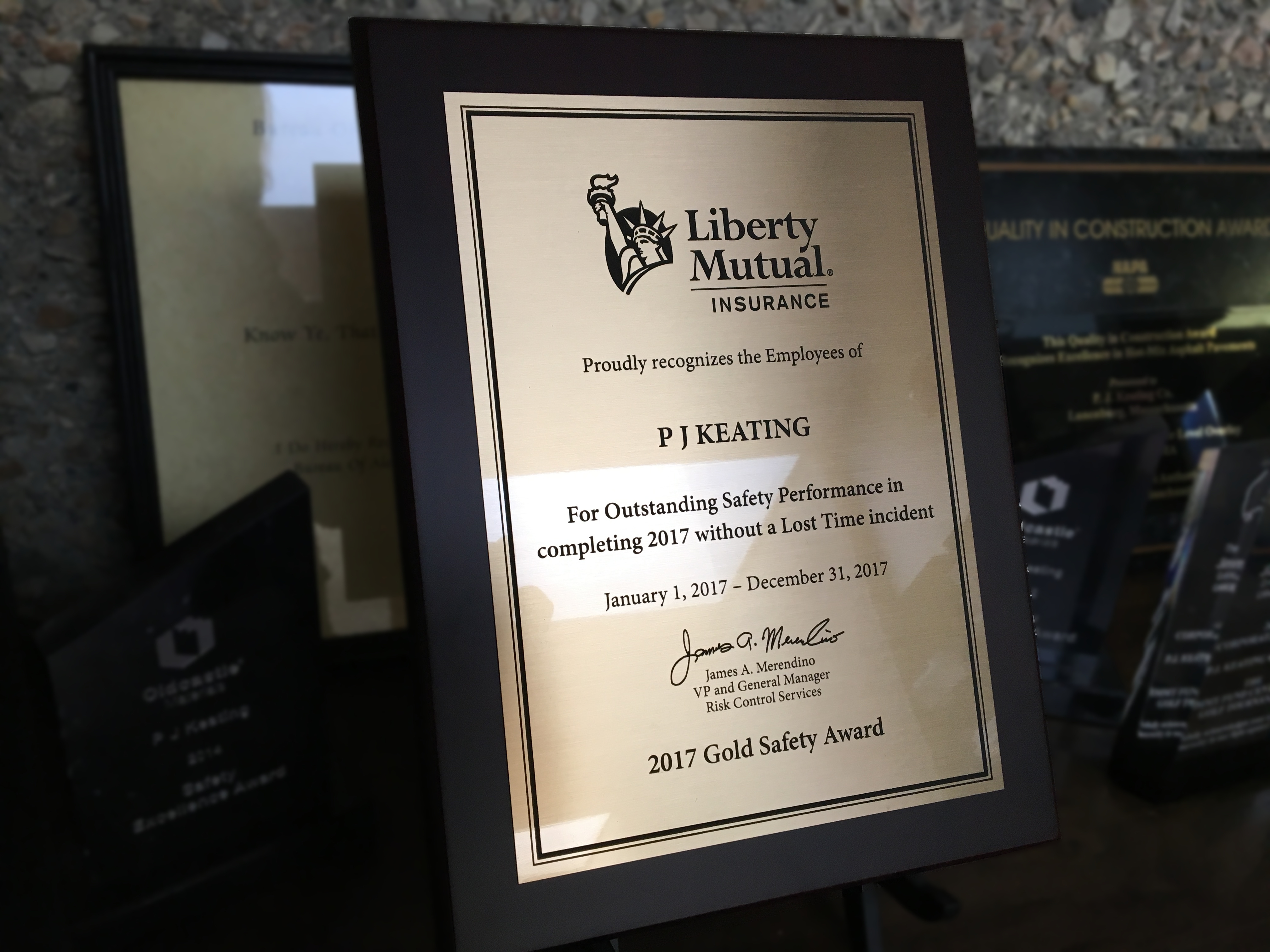 We also received an Outstanding Safety Performance award from Liberty Mutual recognizing P.J. Keating as completing 2017 without a Lost Time incident!