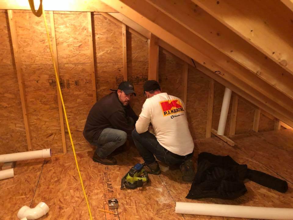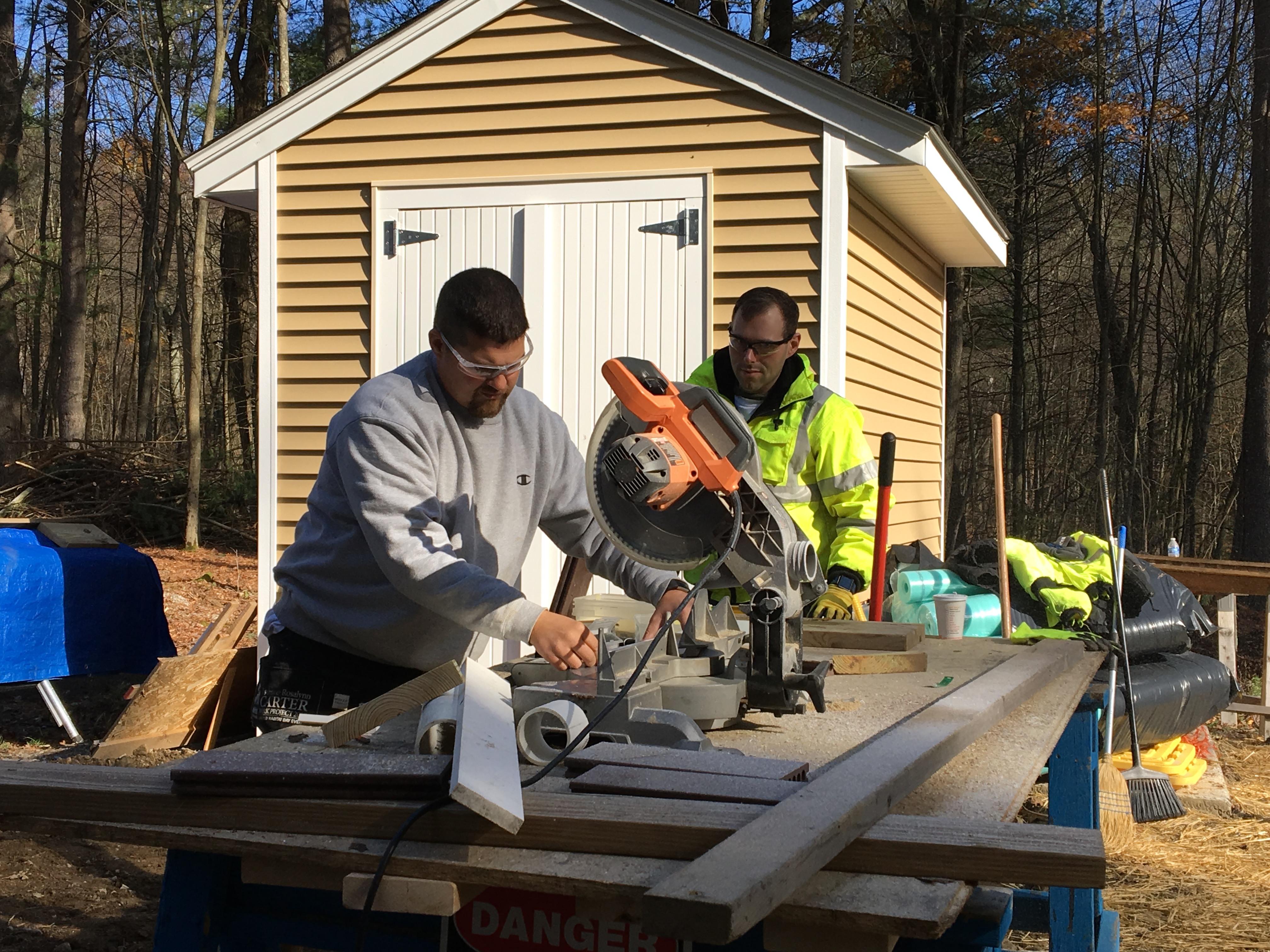 On Thursday November 9th, employees from the P. J. Keating Lunenburg and Acushnet Offices got together in the chilly weather to work on two Habitat houses in Holliston, MA. They helped install vent work in the attic, prep the skirt for the shed, worked on the front porch and other various tasks to get the two houses closer to their move-in dates!