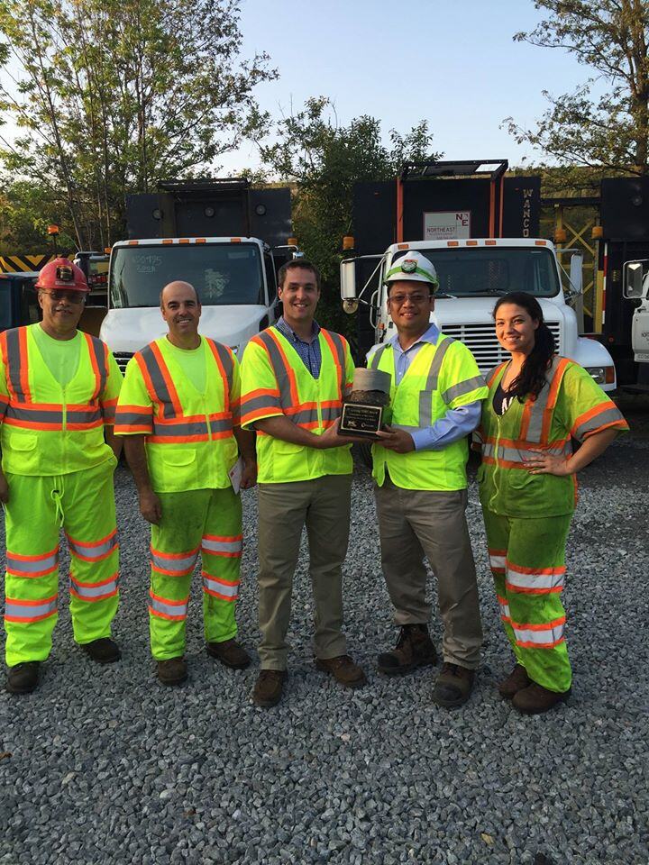 Our first safety winners are from Acushnet Asphalt; Bruce Miranda, Claudio Moco, Mike Letourneau and Mike Bulcamino. When an exhaust fan developed a crack during production and needed immediate repairs, the Acushnet Asphalt team took action. The plant was shutdown and the team worked together to develop a JSA and plan the repair procedure. They also took steps to ensure the external maintenance workers that needed to be called in were up-to-date on their JSA and included in their Lock-Out/Tag-Out procedure. Congratulations to the Acushnet Asphalt team for efficiently repairing the safety hazard and making sure all safety steps were taken in their procedures!