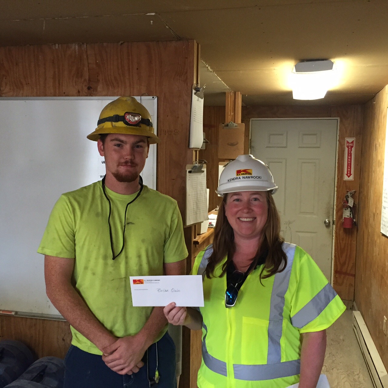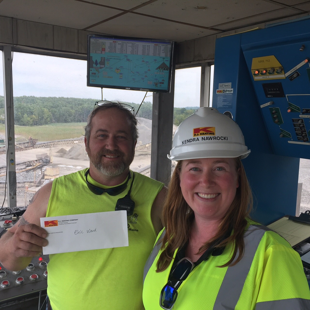 Next up is Brian Quin and Eric Ward, who were both recognized with a Safety Award for their emergency repair on a safety belt at the Lunenburg Stone Plant. Emergency repairs on safety equipment is crucial for keeping the rest of the crews safe now and in the future, so we're very thankful for their work and especially that they completed it with zero incidents!