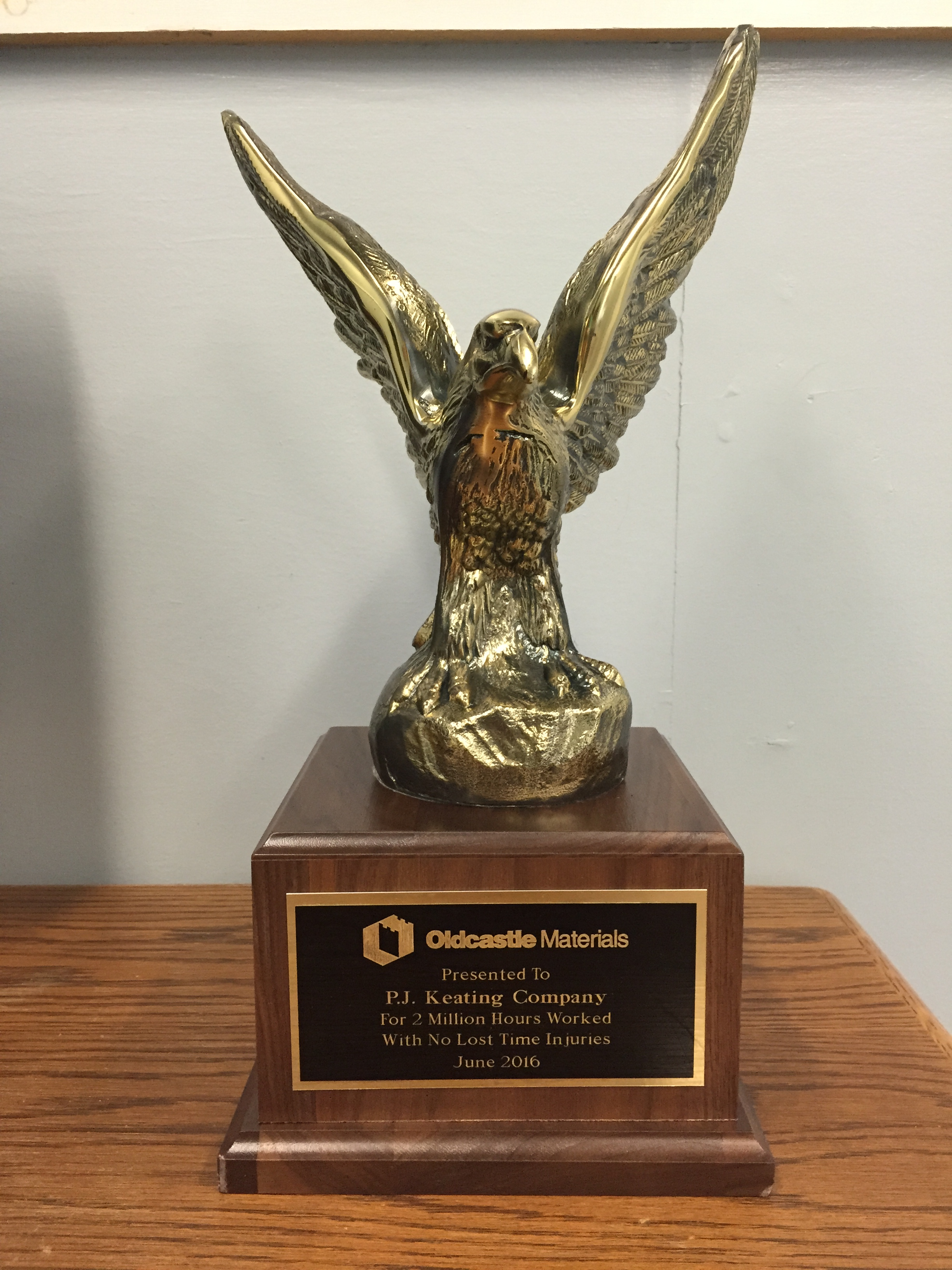 PJ Keating has worked two million hours without a lost time injury. I would like to congratulate each and every employee on your commitment to working safely every day. This is a significant achievement, and one to be proud of. We have received an award and a commendation letter signed by Randy Lake, Charlie Brown, John Keating, John Parson, and Lee Cole, stating “This type of achievement doesn’t happen by accident and requires intense focus and commitment by the entire organization. The example you set is a great encouragement to all of us throughout Oldcastle and one we’re pleased to share – you’ve proven that it’s possible to create an environment that is free from significant injury. Every one of us on the Oldcastle Materials team has made a personal pledge to accept our role in building our safety culture – “When I SEE something I will STOP and Do something”. Thanks for exemplifying that commitment and challenging us to get better.”